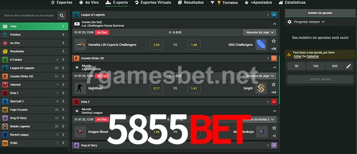 O 5855Bet oferece uma grande seleção de opções de apostas em e-sports com probabilidades competitivas